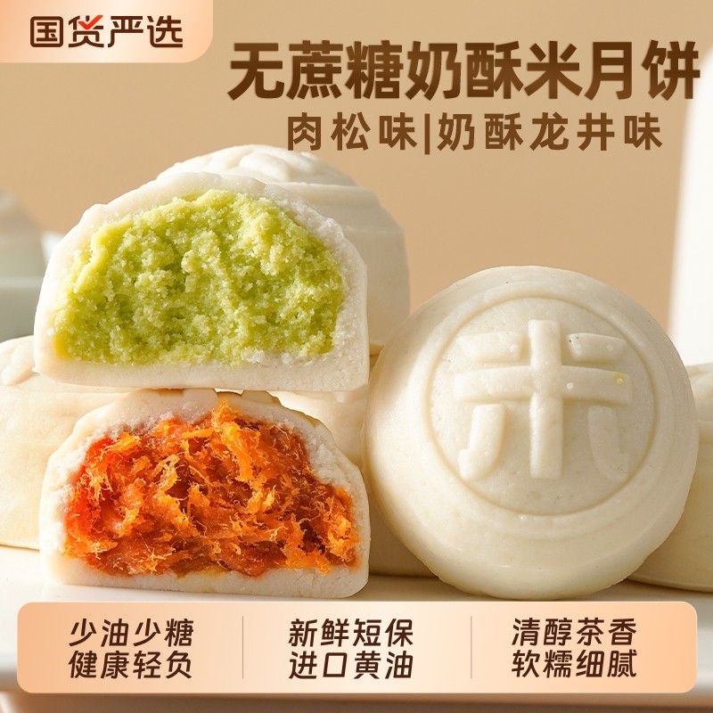 龙井奶酥米皮月饼无蔗糖冰广式肉松下午茶甜品糕点点心中秋送礼品