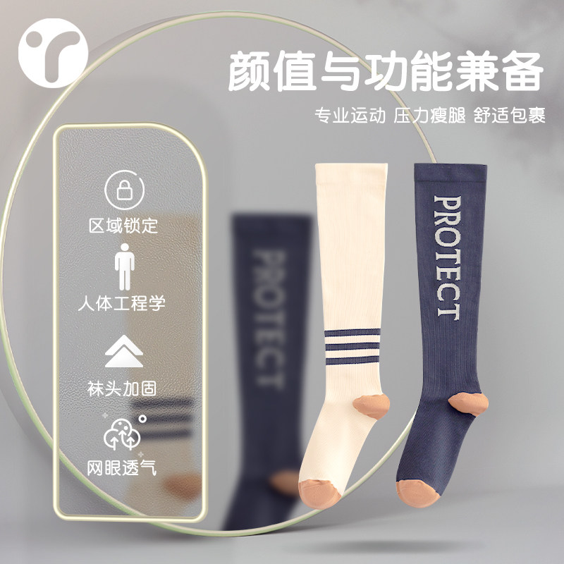 女士专业运动压力袜夏季速干小腿袜压缩马拉松跑步健身瘦腿长筒袜