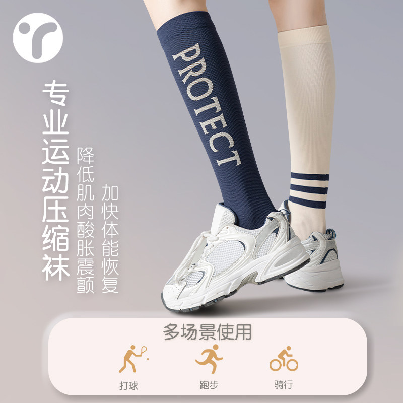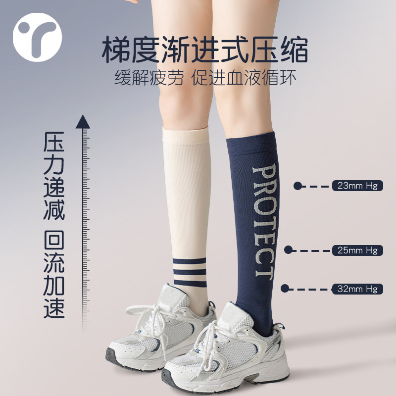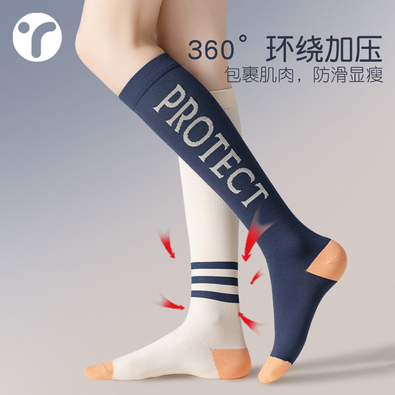 女士运动压力袜夏季速干小腿袜压缩马拉松跑步健身瘦腿长筒袜