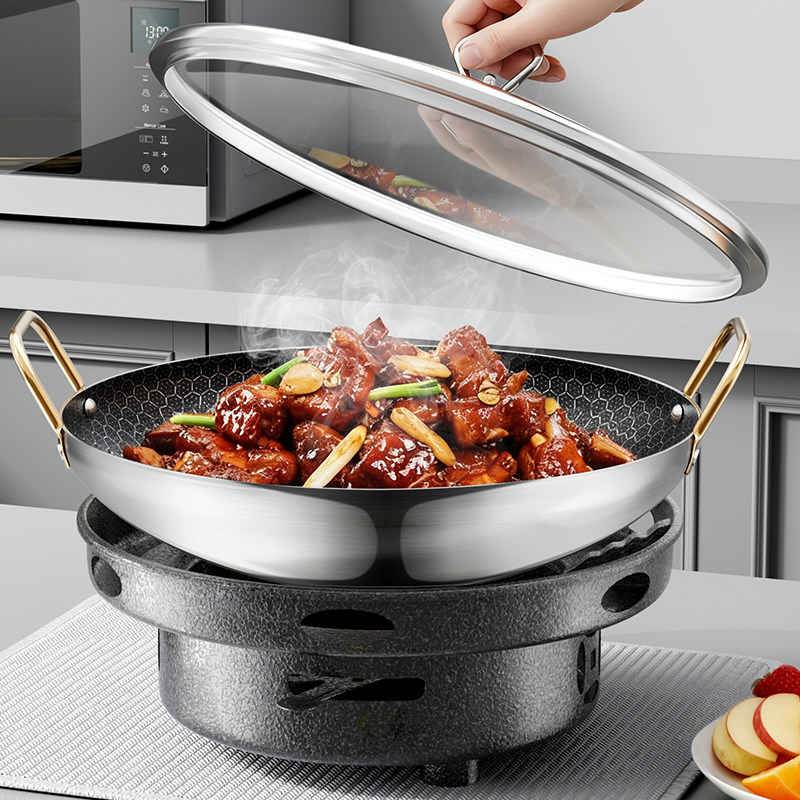 蜂窝纹理不粘锅 耐刮耐磨 聚能大火力