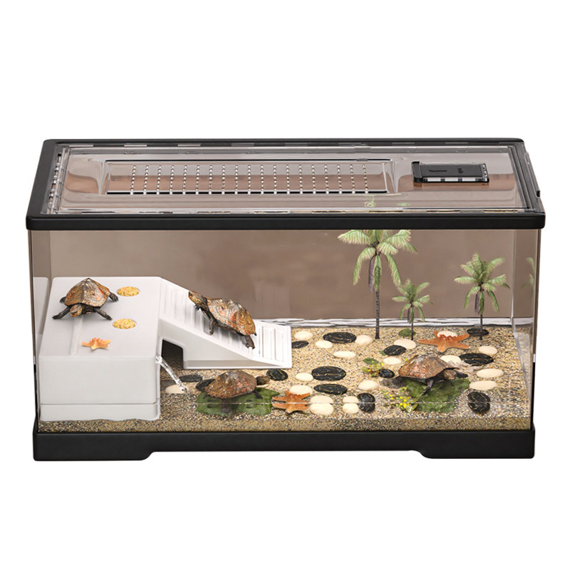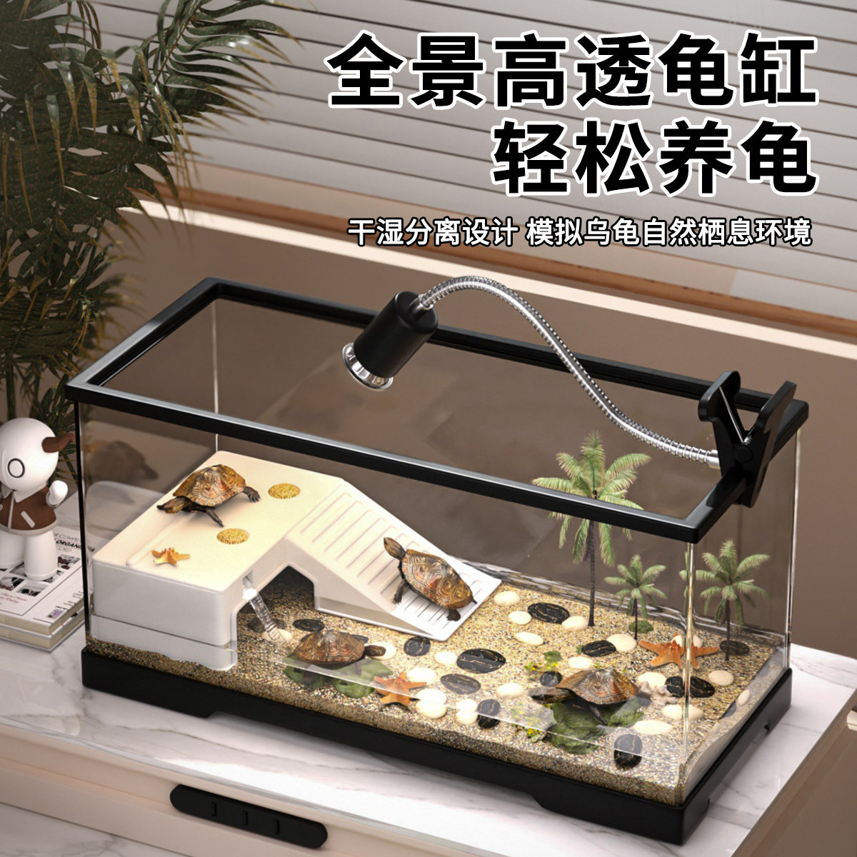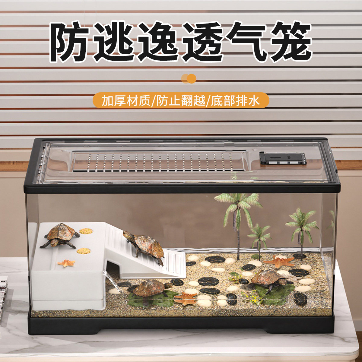 乌龟饲养缸台面造景带盖爬台螃蟹巴西龟海龟一体式透明生态养殖缸