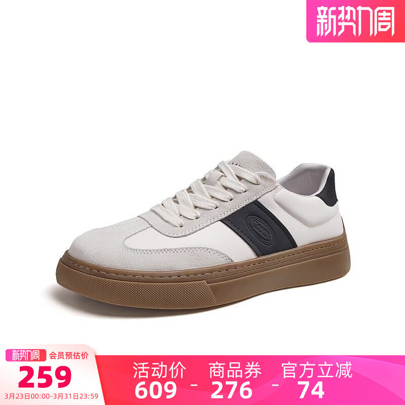 骆驼男鞋德训鞋2026春季新款复古百搭运动鞋真皮厚底休闲板鞋男潮