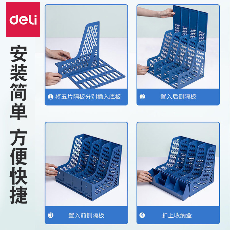 得力文件框文件收纳架加厚文件放置架黑色简易立式书立文件架书架桌面办公文件收纳架文件盒桌上资料架