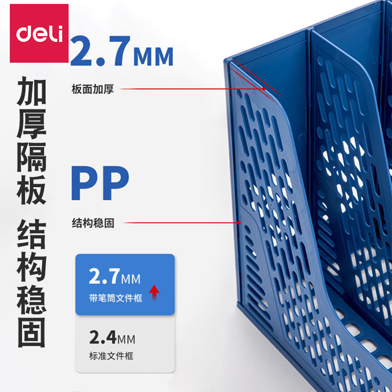 得力文件框a4文件收纳盒文件栏置物架子桌面收纳整理筐带笔筒书架