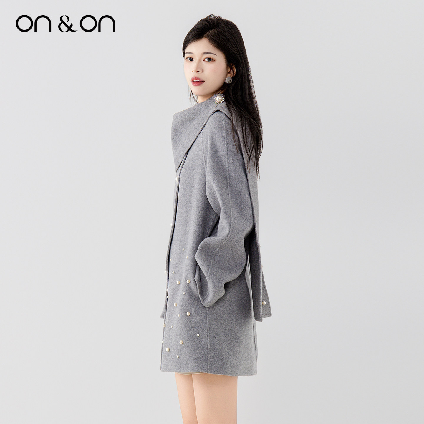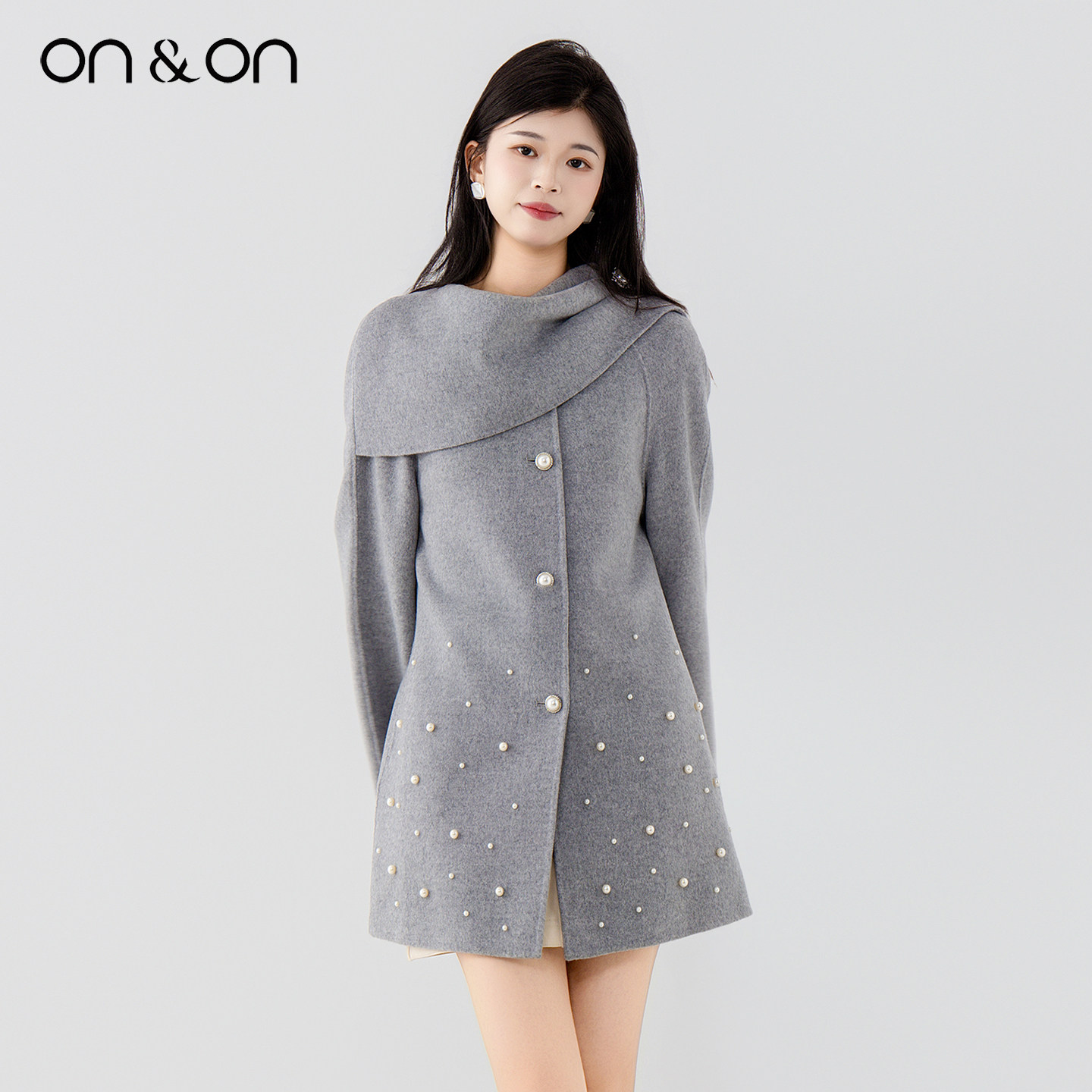 ON&ON/安乃安冬季新款韩系披肩钉珠千金玛德琳优雅气质羊绒大衣