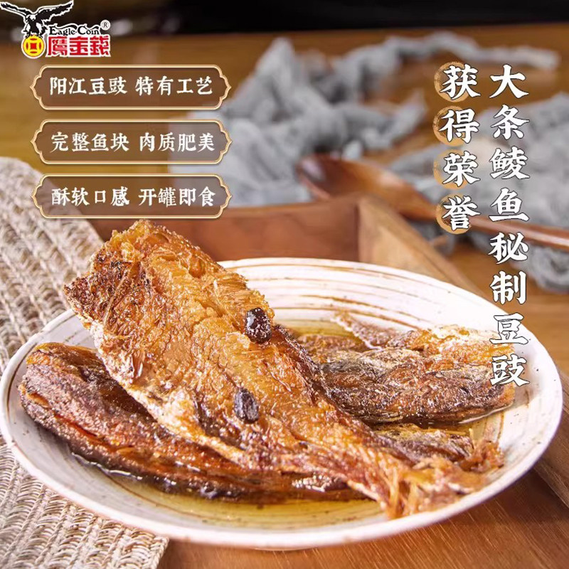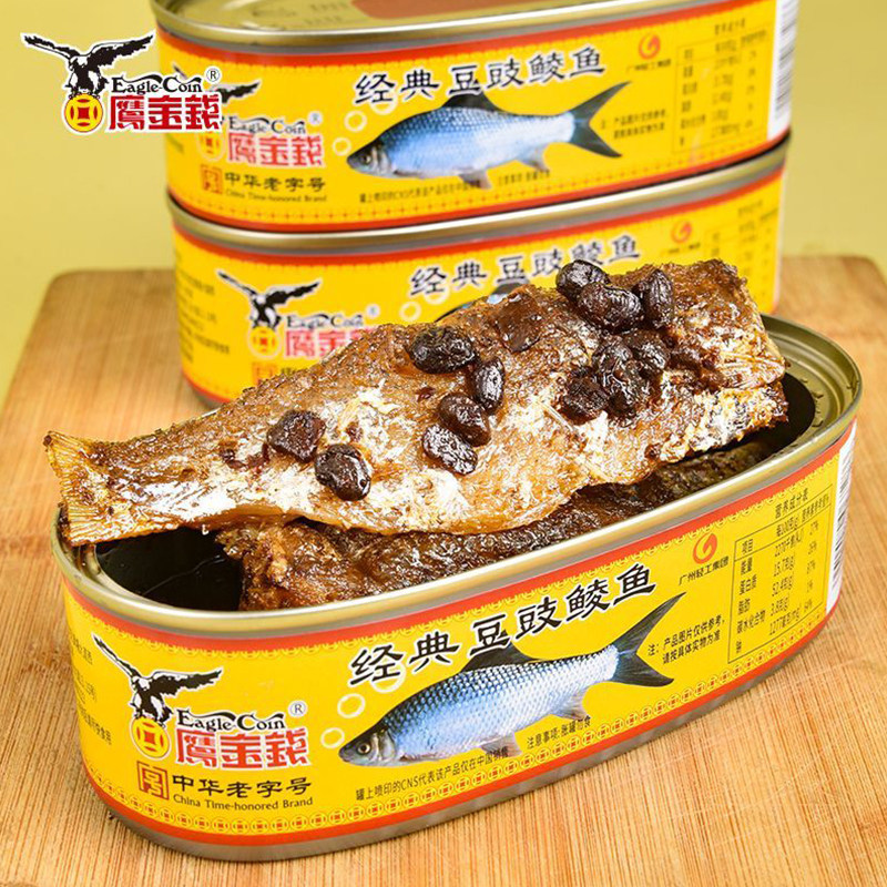 鹰金钱经典豆豉鲮鱼罐头227g即速熟食咸鱼下饭酒小菜早餐喝粥配料