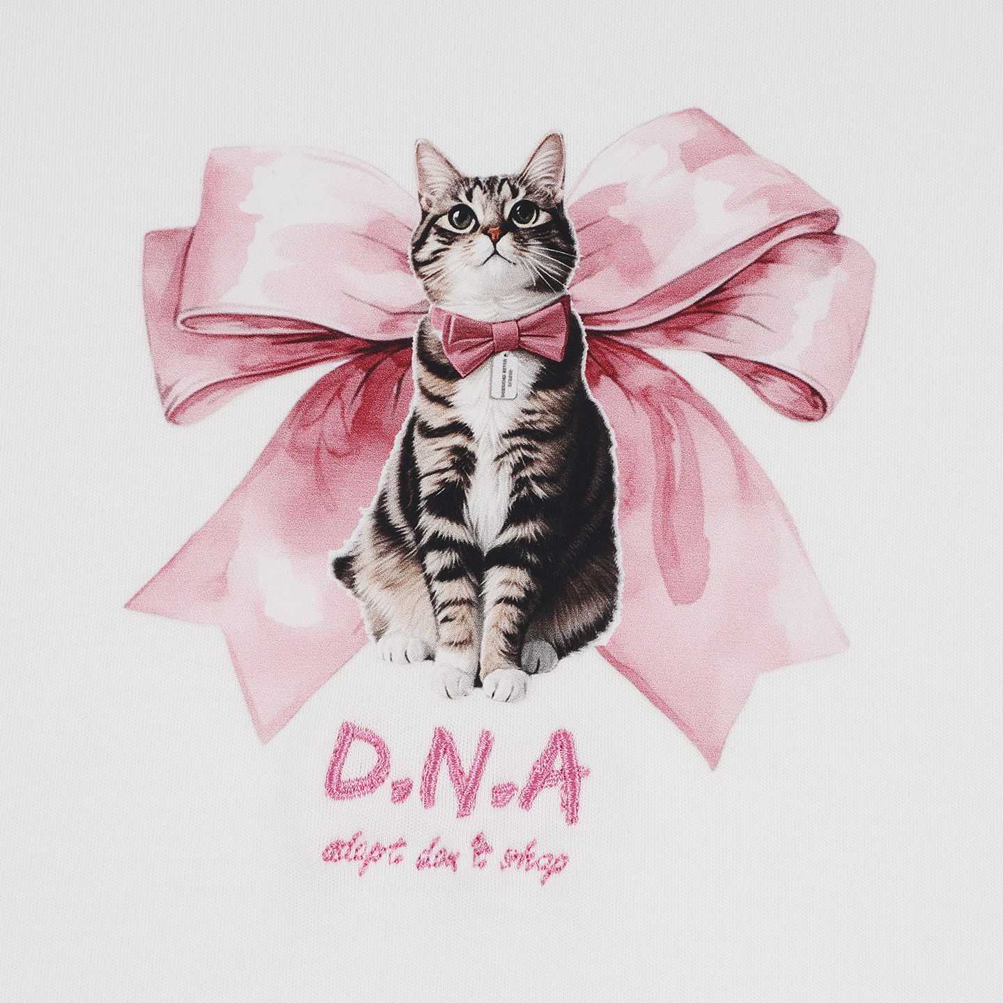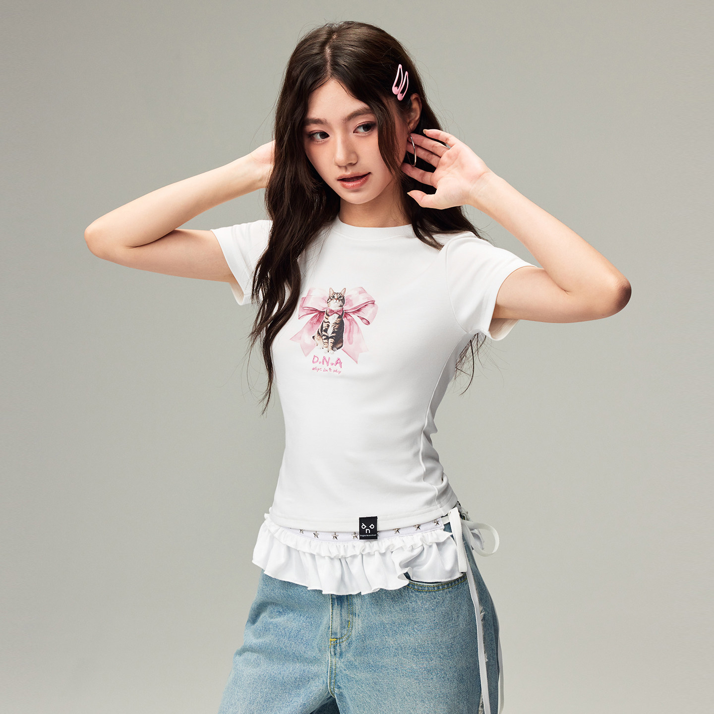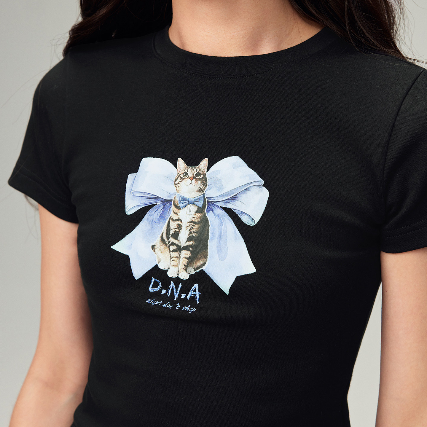 【DNA官方】小猫烫画刺绣修身短款正肩短袖女2025年夏季新款T恤