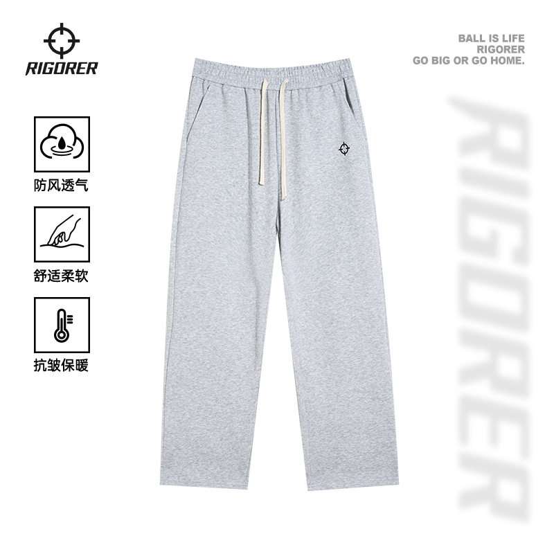 准者官方直筒运动长裤男士春季保暖休闲跑步篮球针织灰色宽松卫裤
