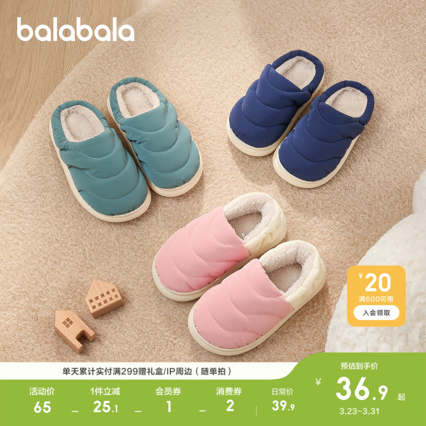 巴拉巴拉儿童棉拖鞋男女童宝宝幼儿室内鞋子包跟秋冬棉鞋萌趣休闲