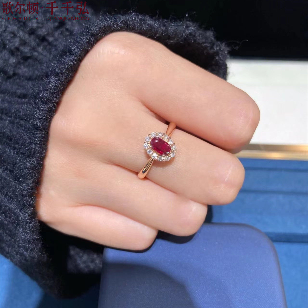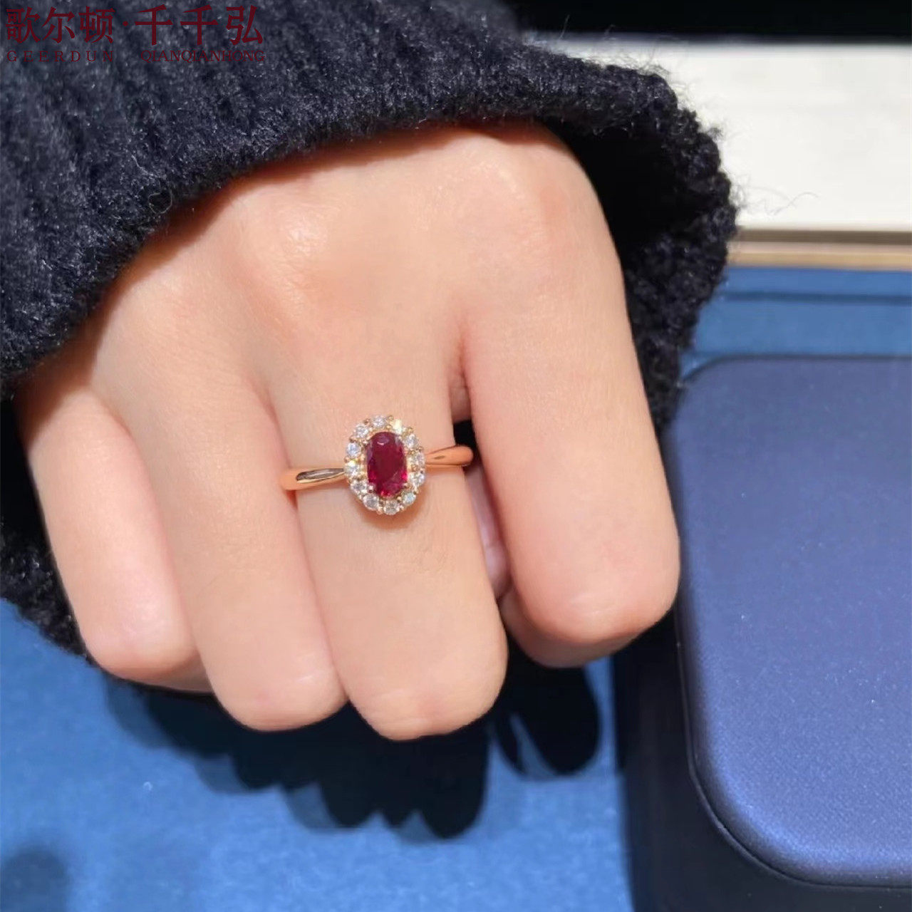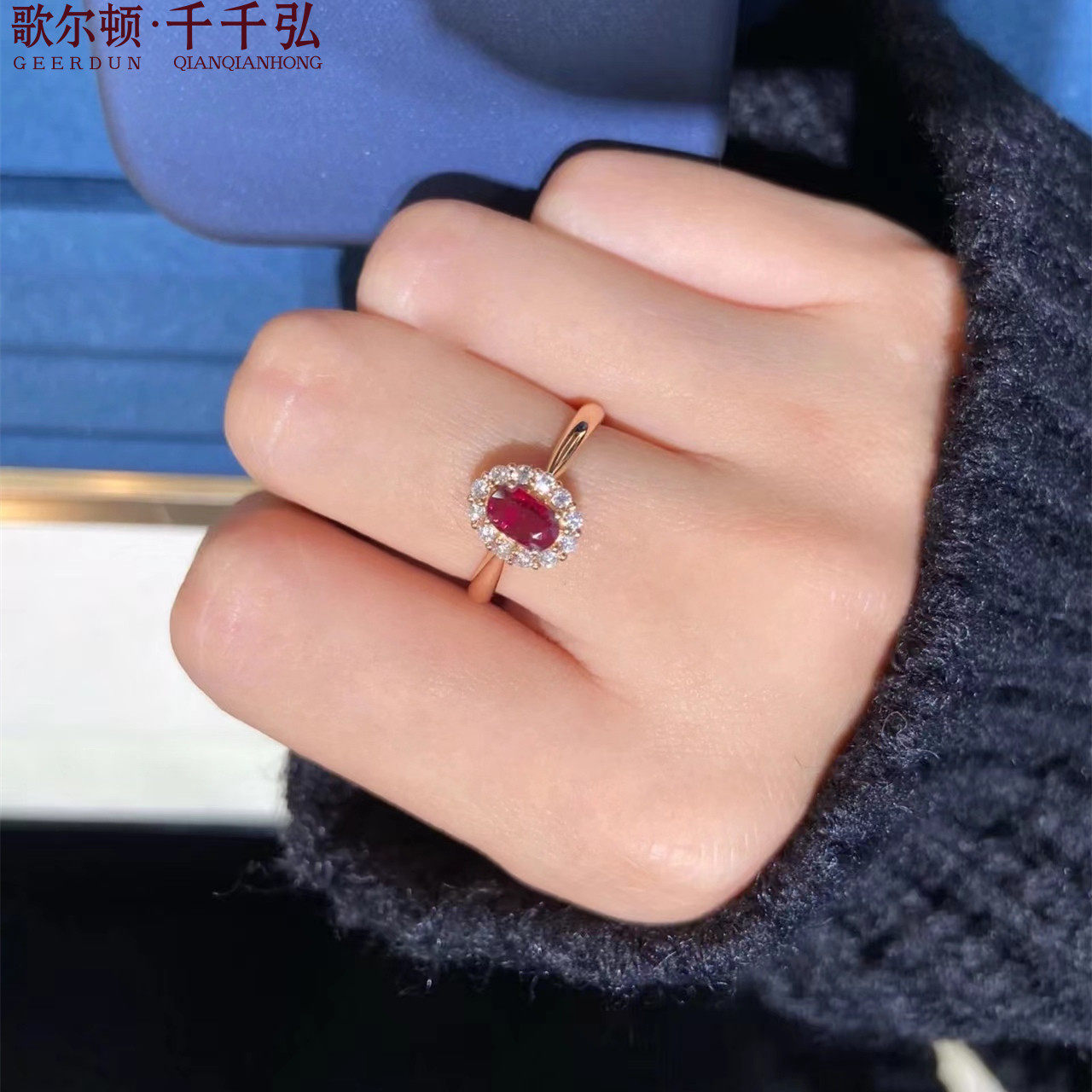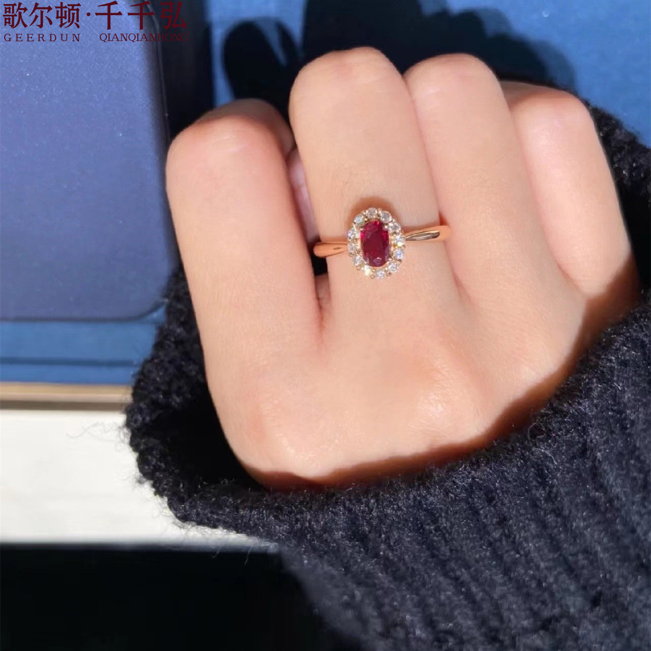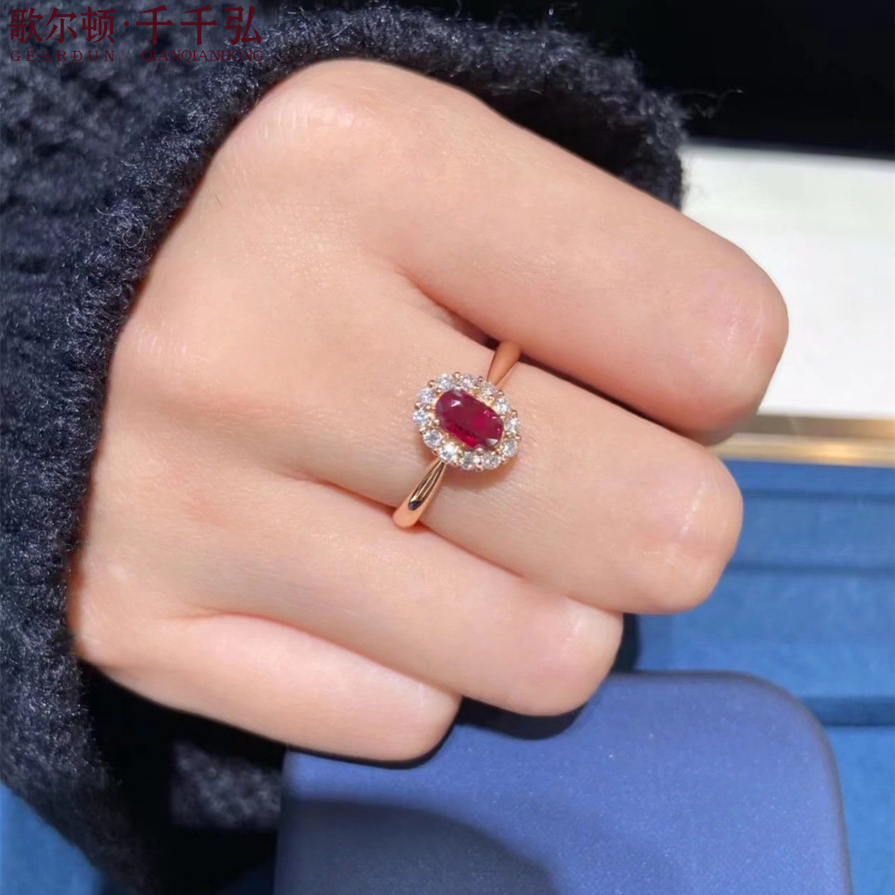 18K金镶嵌缅甸天然鸽血红宝石配钻戒指女高级感专柜正品支持复检