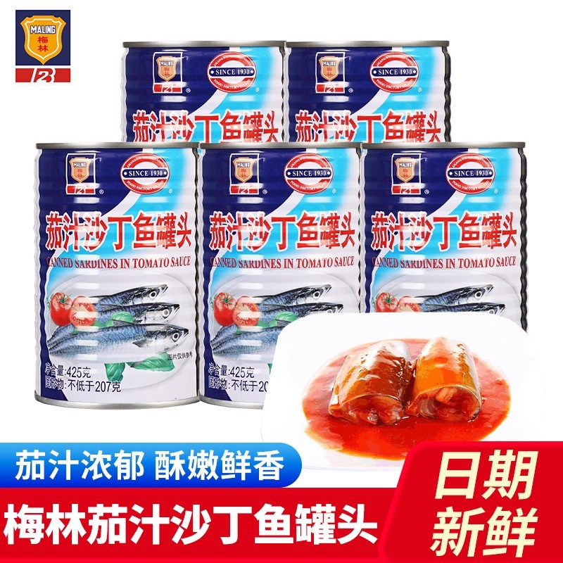 梅林茄汁沙丁鱼罐头425g*2罐装即食海鲜下饭菜番茄鱼方便熟食黄豆