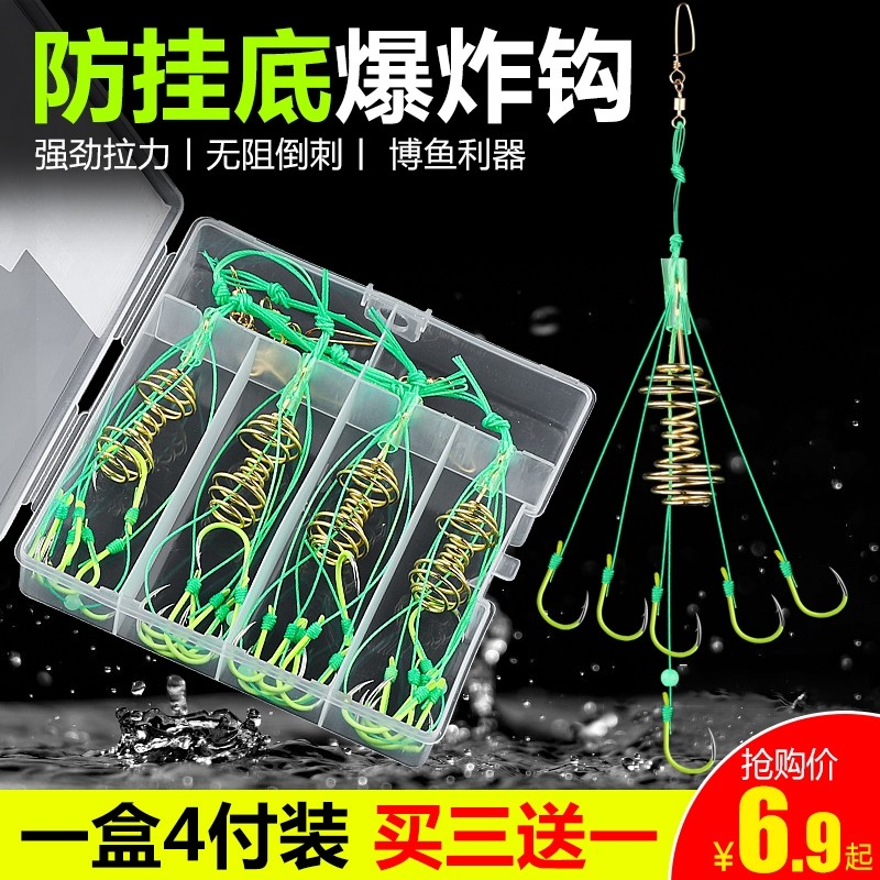 防缠绕伊势尼防挂底弹簧爆炸钩鱼钩套装抛竿海竿钩渔具用品饵料