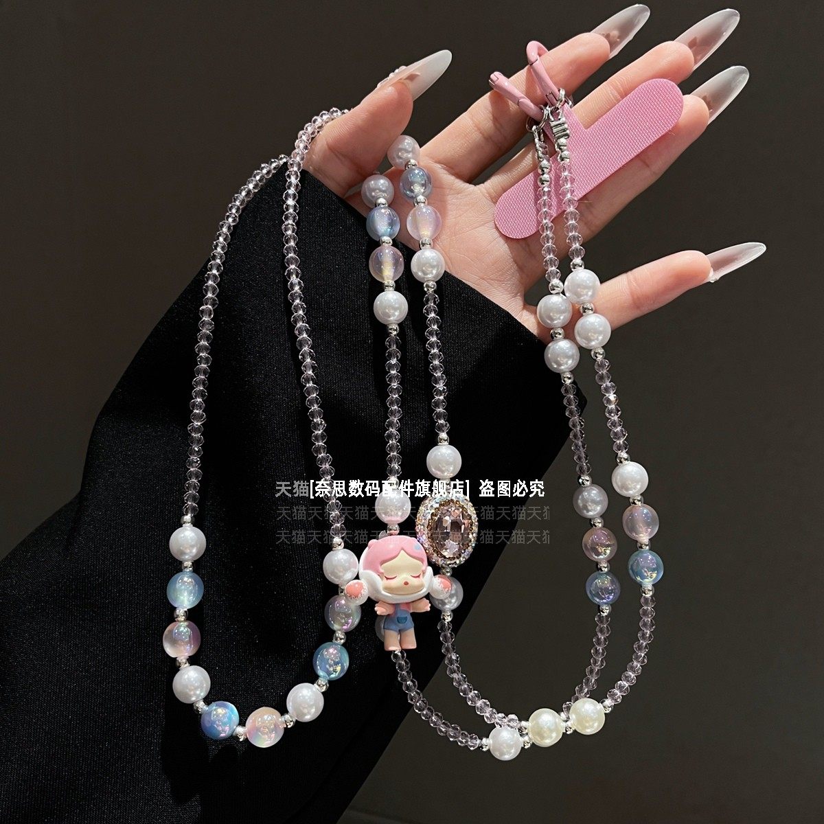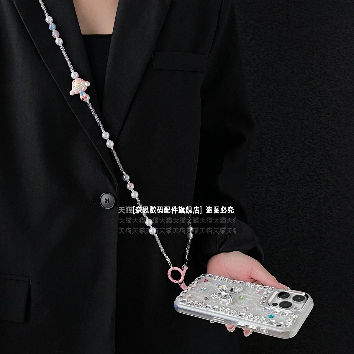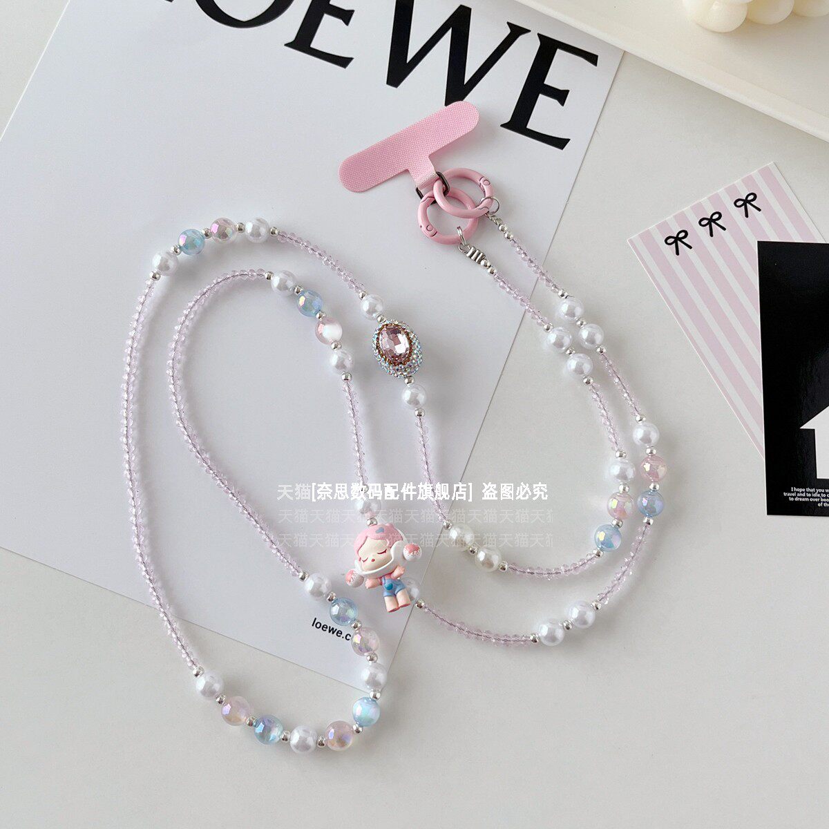 正版sp手机链挂饰手工原创diy背带链条精致水晶串珠斜挎可背挂链可爱潮牌二次元礼物包包挂件链子防丢长款壳