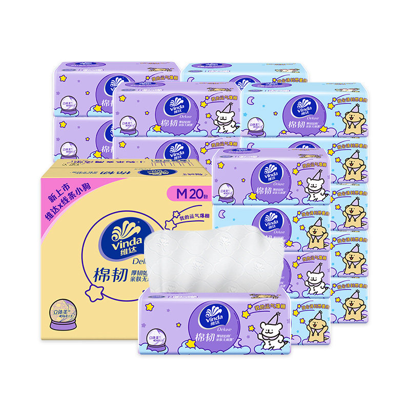 【百亿补贴臻选】维达抽纸棉韧立体美24包整箱家用实惠装卫生纸巾