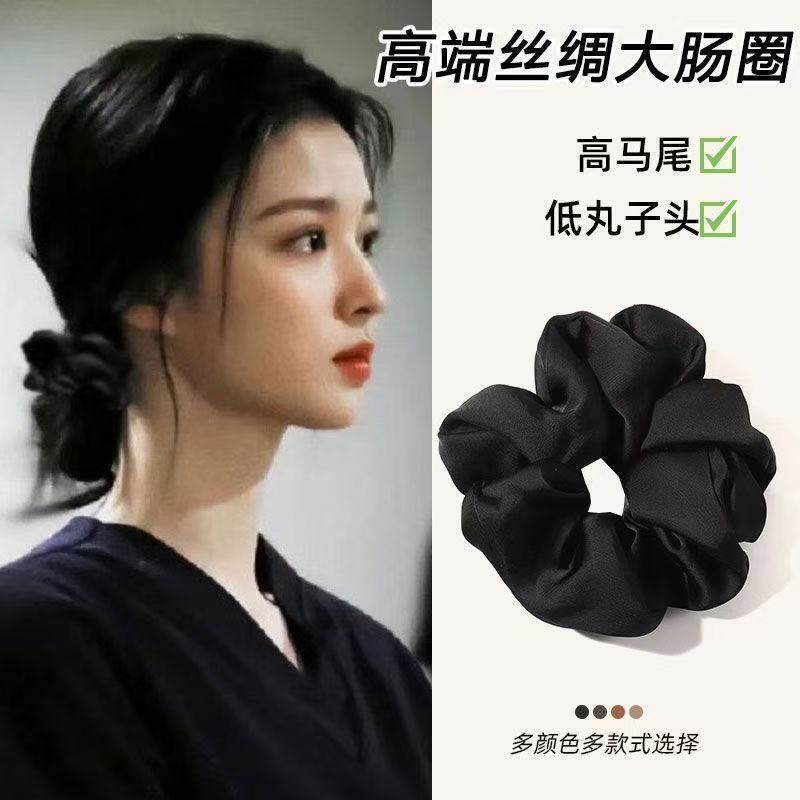 新款大肠发圈女发绳高级感头绳扎头发皮筋黑色绑头花发饰2026缎面