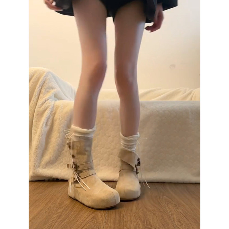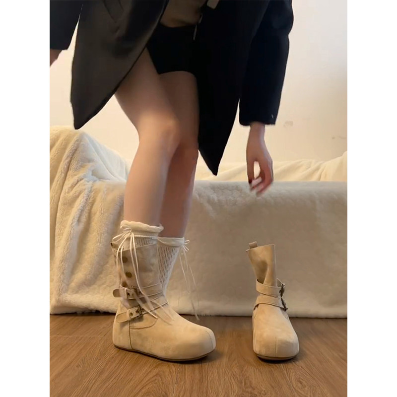 六点大叔内增高复古美拉德马丁靴女2025秋新款不过膝两穿西部短靴