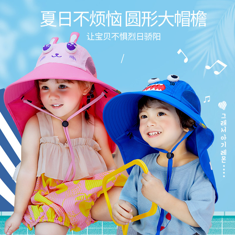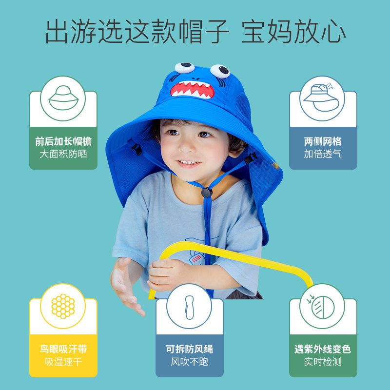 儿童防晒帽宝宝遮阳帽防紫外线男孩女童太阳帽大帽檐夏季渔夫帽子