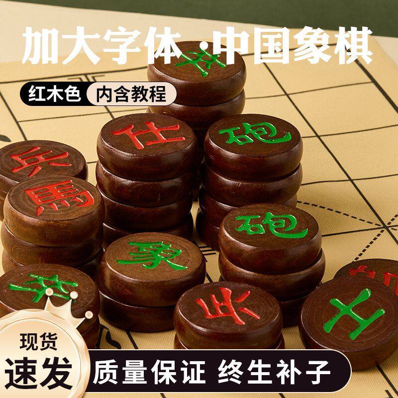 红木色中国象棋实木制作大号小号象棋适合成人学生儿童隶书带棋盘