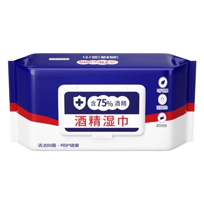 80抽含75度酒精湿巾消毒办公家用卫生杀菌专用湿纸巾大包便携清洁