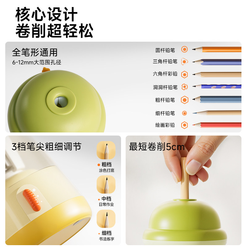 爱果乐自动削笔机全电动大口径充电卷笔刀削笔刀转笔刀幼儿园小学生专用铅笔刀削笔器一年级全自动刨笔绞笔刀