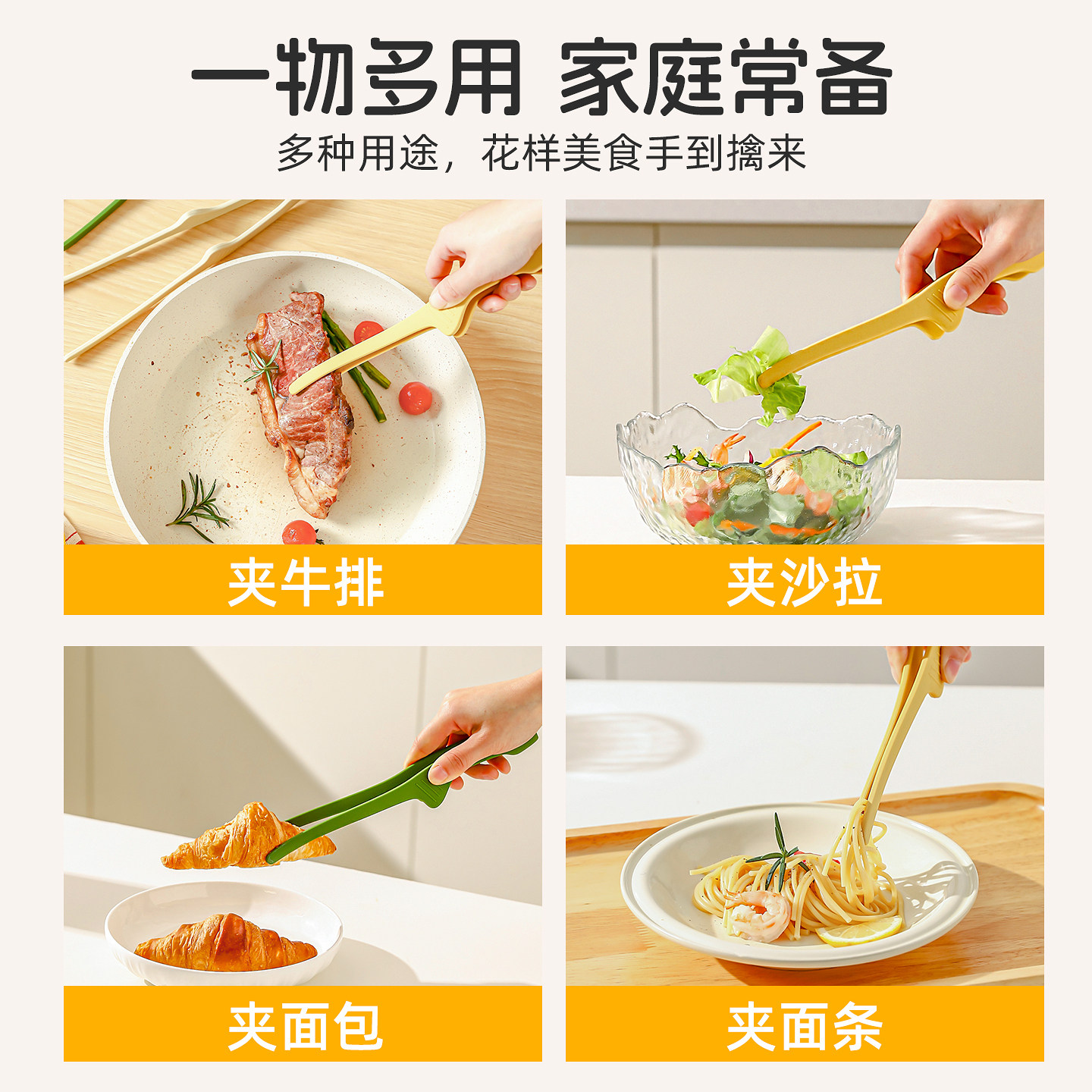 川岛屋硅胶食物夹牛排夹子厨房加长防烫烤肉工具烧烤专用夹食品夹