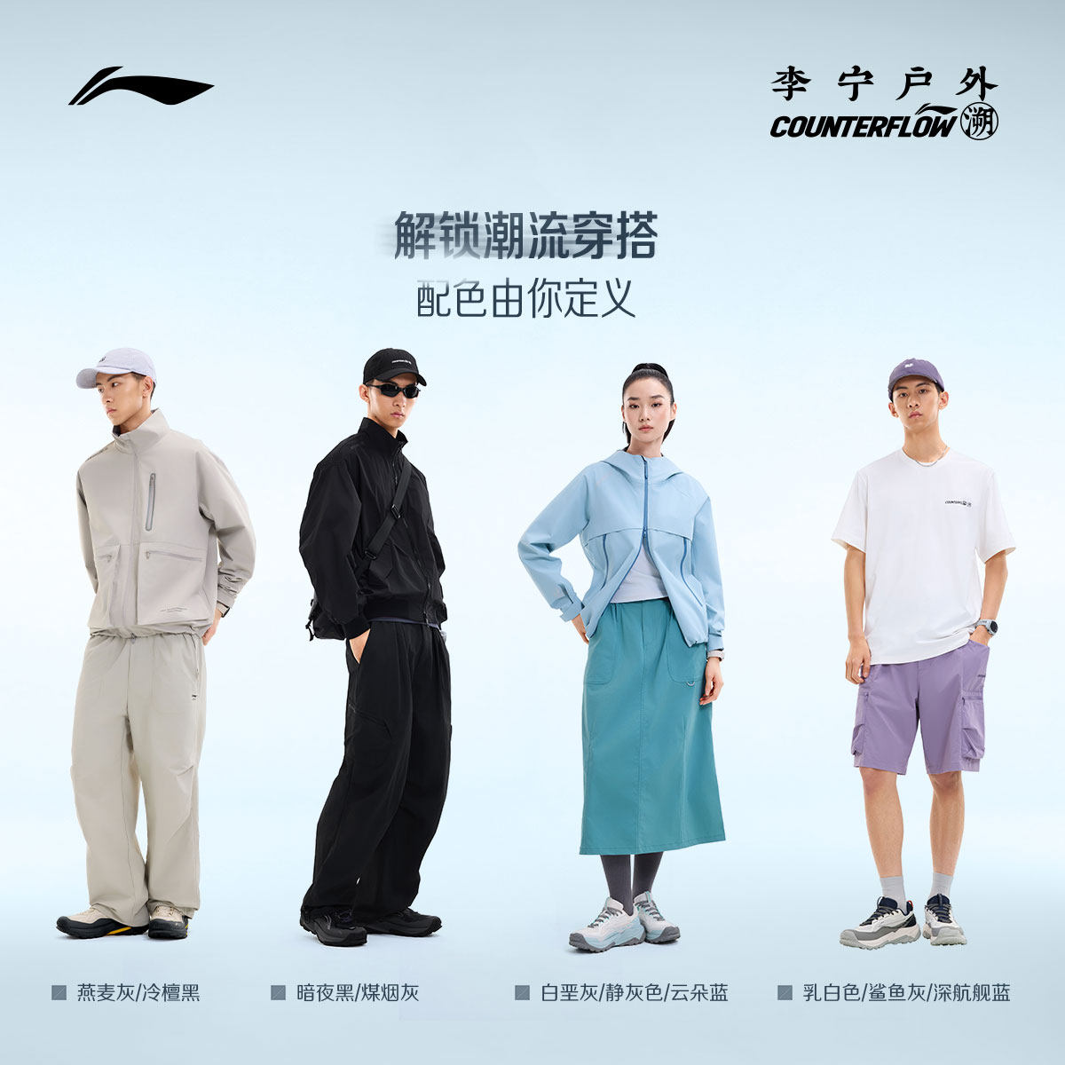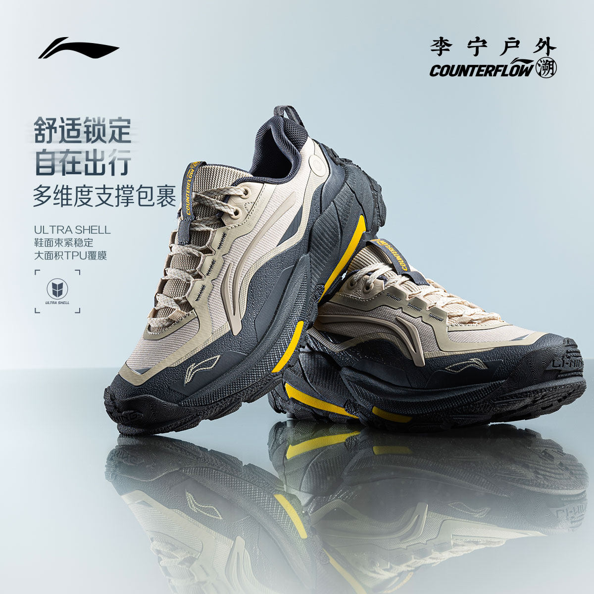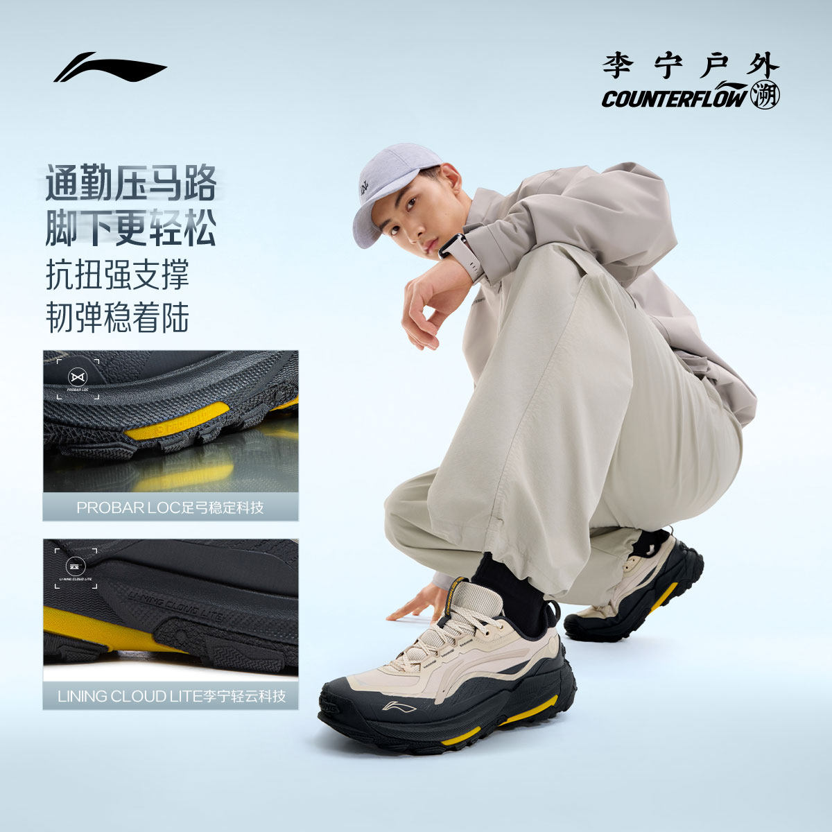 李宁户外CF溯|逸界2休闲鞋男女鞋减震轻便回弹防滑耐磨运动鞋