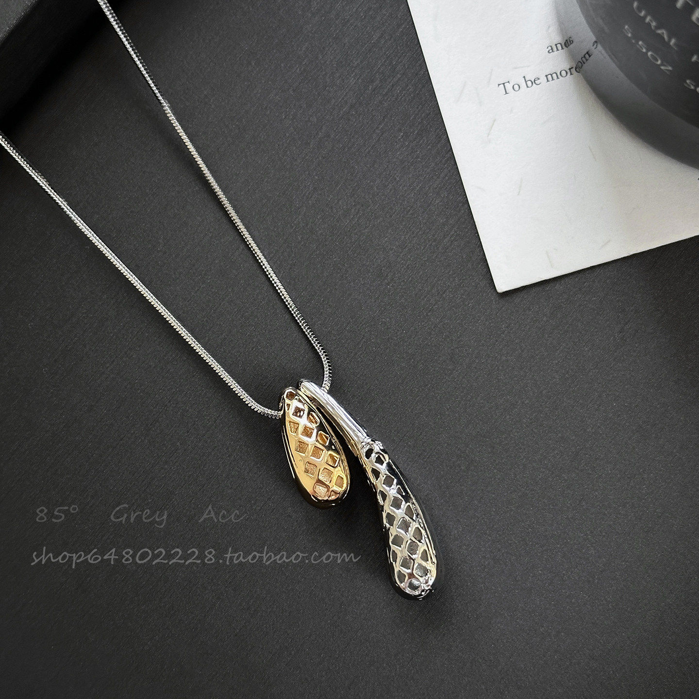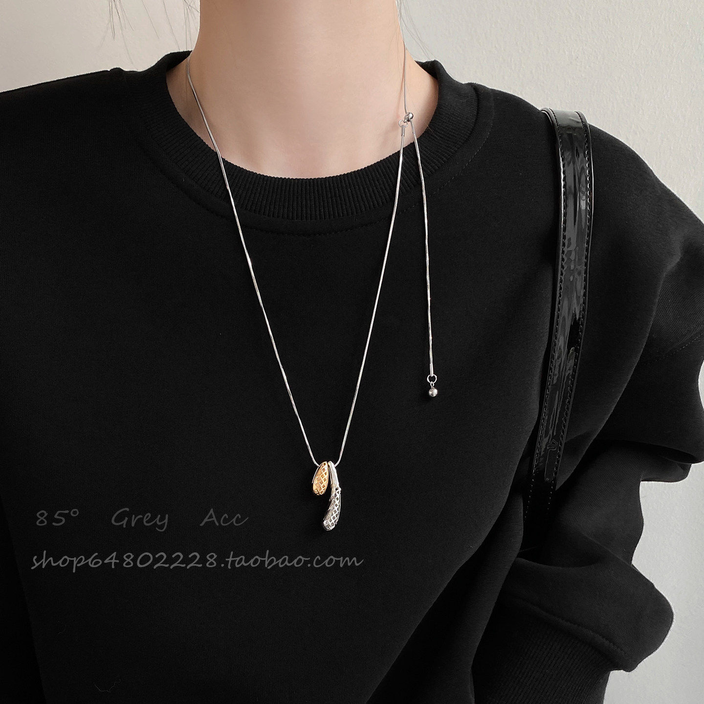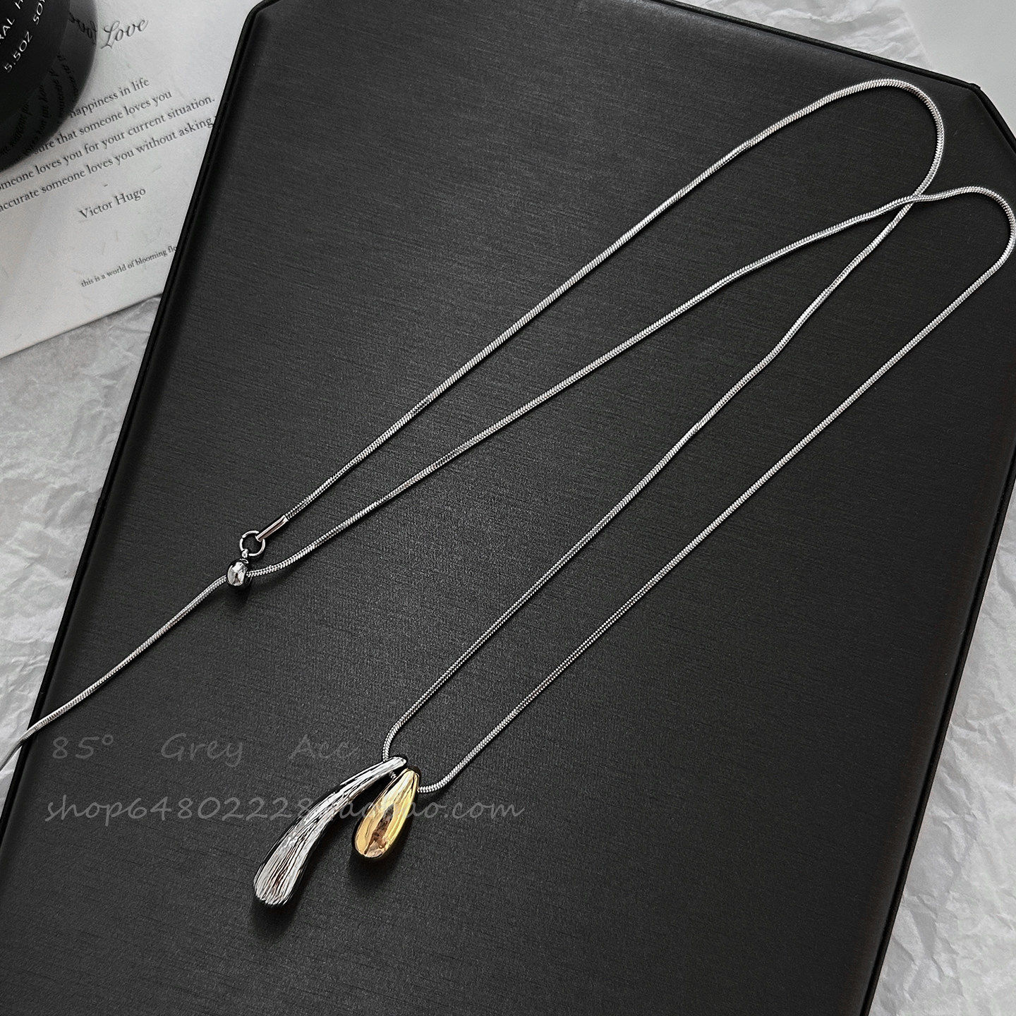银色水滴吊坠项链女秋冬长款轻奢钛钢不掉色装饰毛衣链高级感配饰