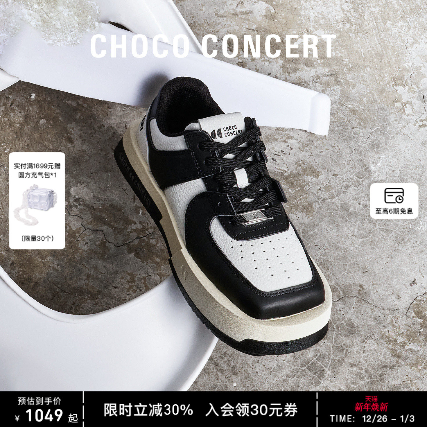 范丞丞同款CHOCO CONCER 设计鞋履丨圆方不对称球鞋厚底板鞋女