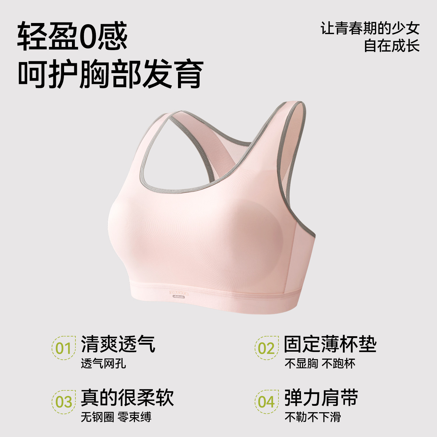 都市丽人少女文胸初高中学生防震背心青春发育期15岁女童运动内衣