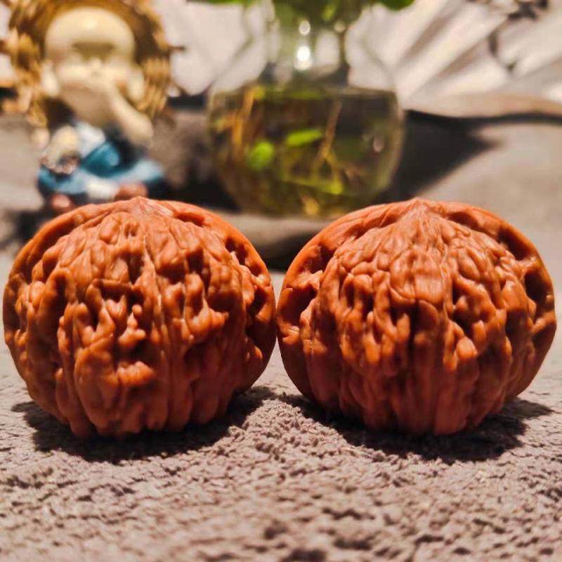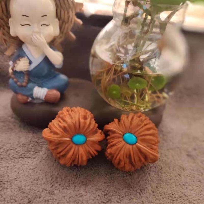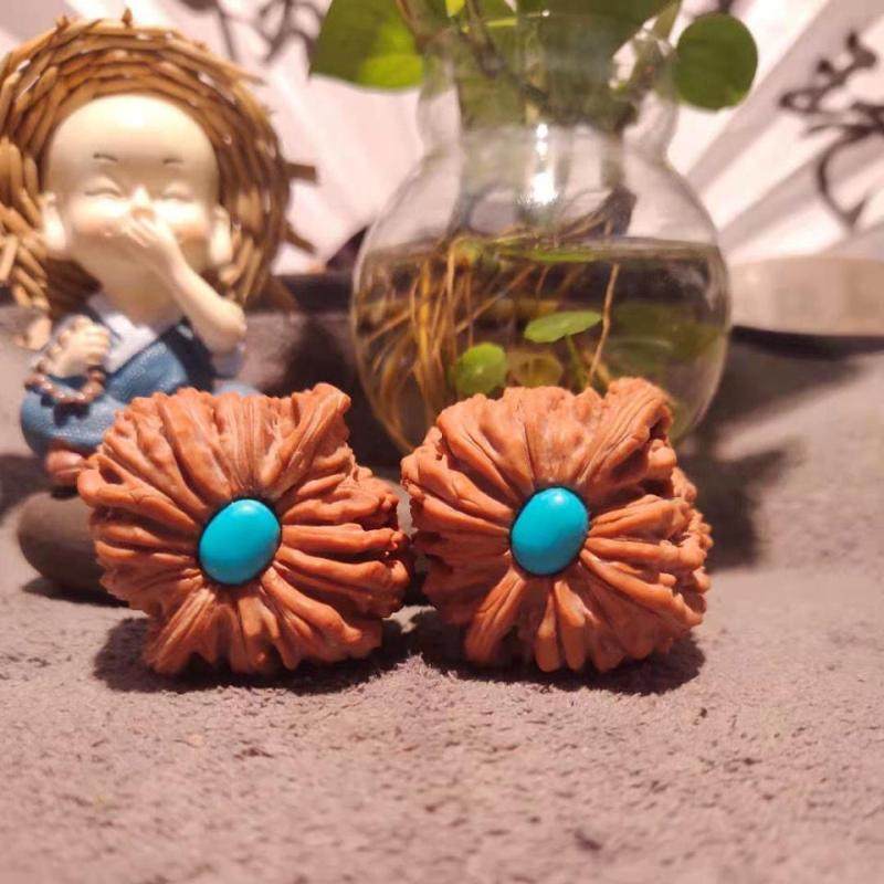 文玩核桃镶嵌人造绿松石封底脐眼四座楼狮子头把玩收藏盘玩男手玩