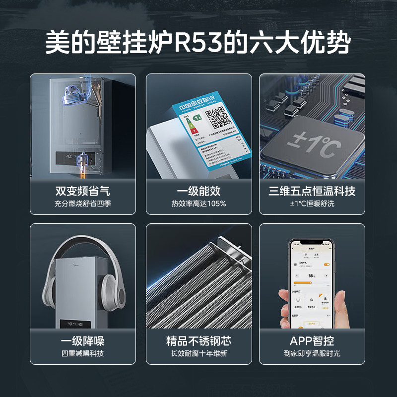【咨询享优惠】美的燃气壁挂炉采暖热水两用地暖锅炉取暖官方R53