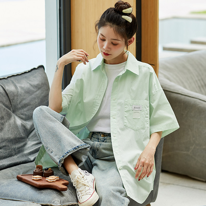森马大力水手联名中袖衬衫女中长款设计感夏宽松满印衬衣炸街甜酷