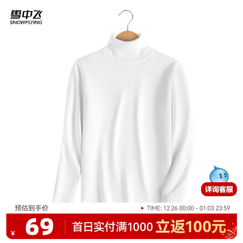 雪中飞毛衣男秋冬2025新款高领内搭加绒加厚男装纯色针织打底衫PC