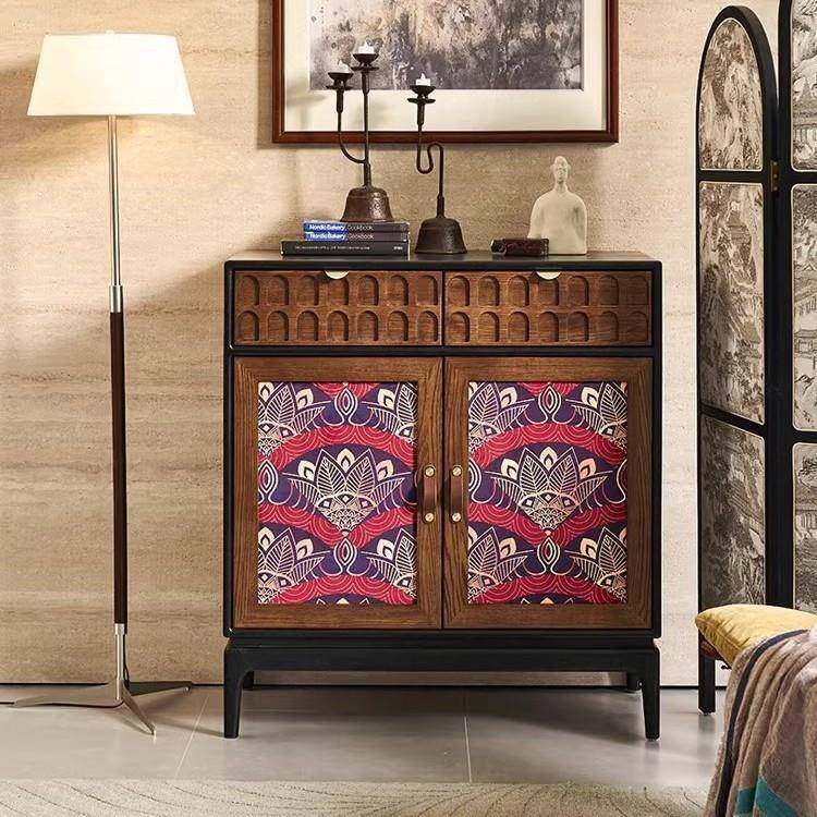 法式复古实木餐边柜靠墙中古雕刻茶水柜客厅置物收纳柜入户玄关柜