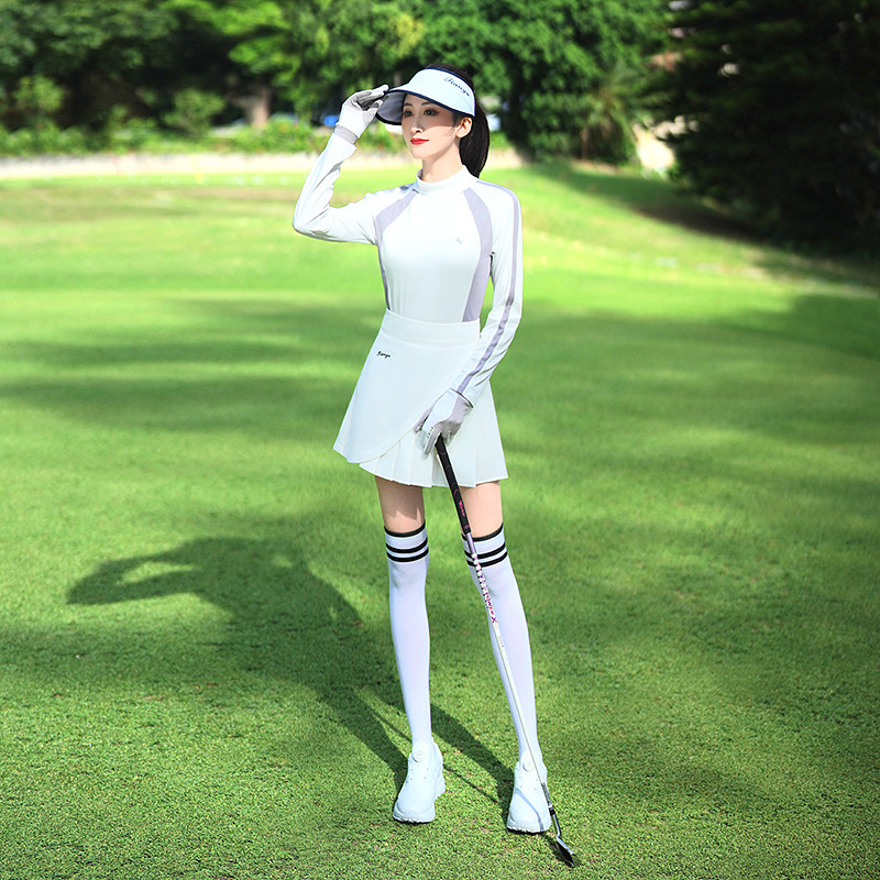 高尔夫球女士款速干防晒长袖衫高领透气网布弹力修身运动上衣服装