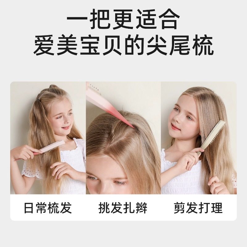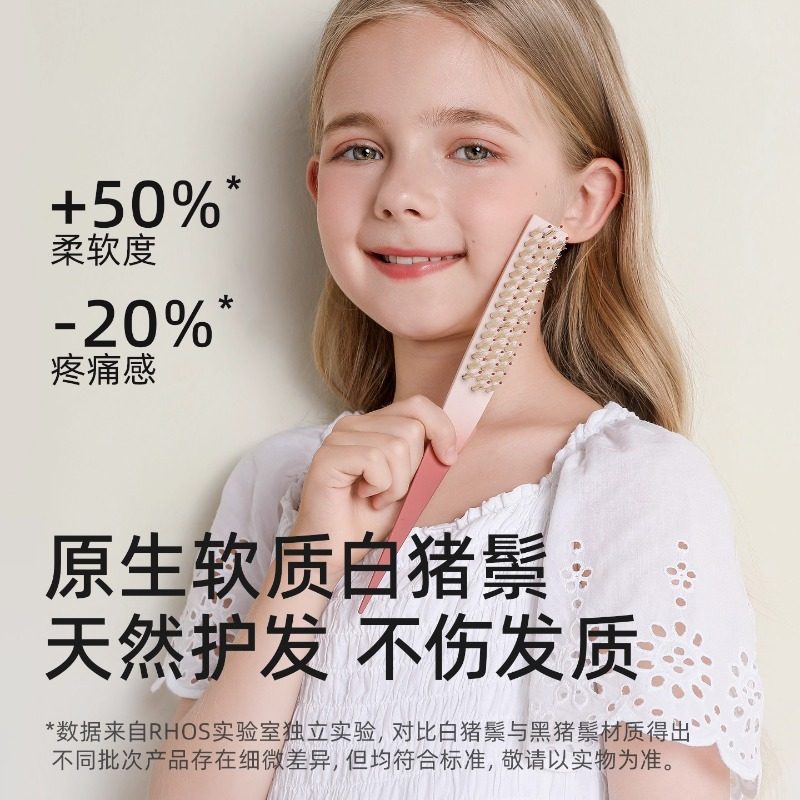 RHOS猪鬃毛尖尾梳子小号儿童女孩刘海专用造型家用不伤发尖头气垫
