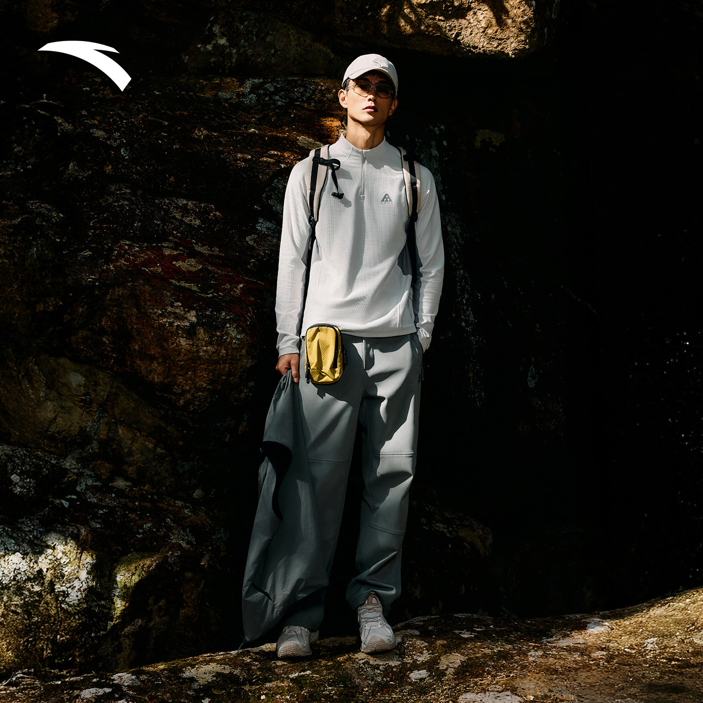 安踏户外T丨大地之壳山系长袖t恤男士春季新款半拉链徒步运动上衣