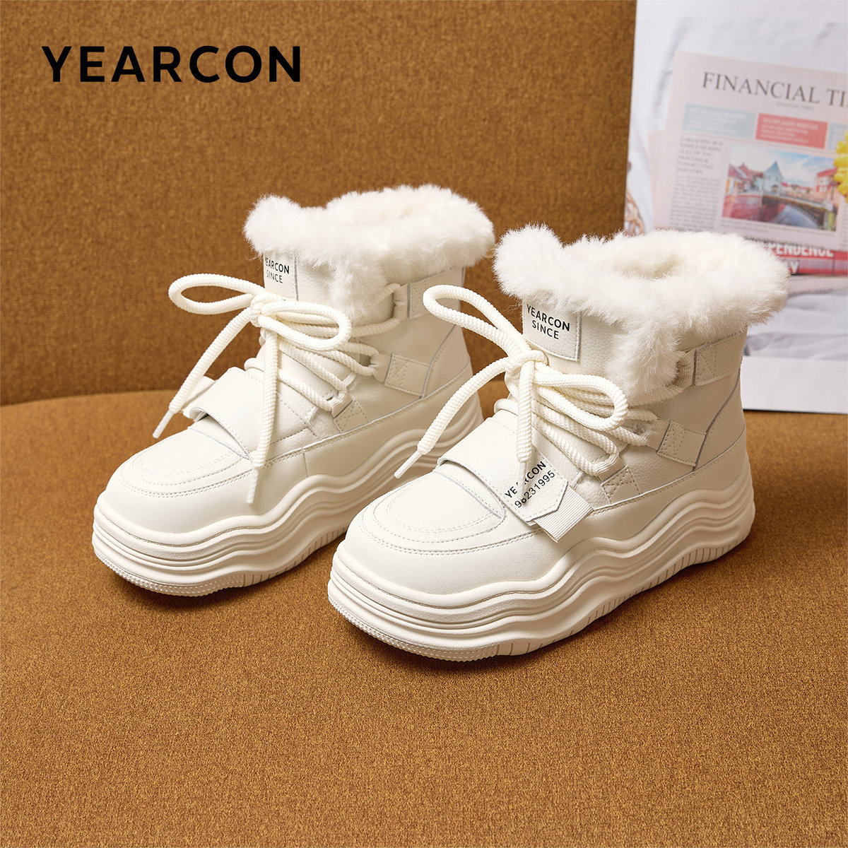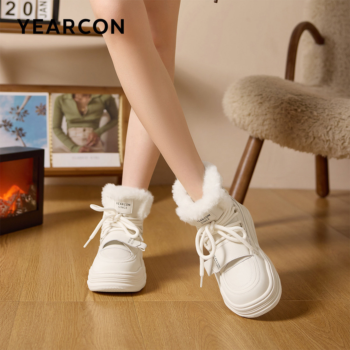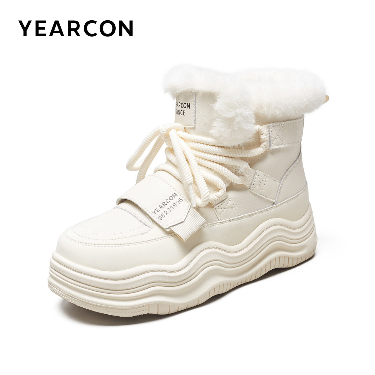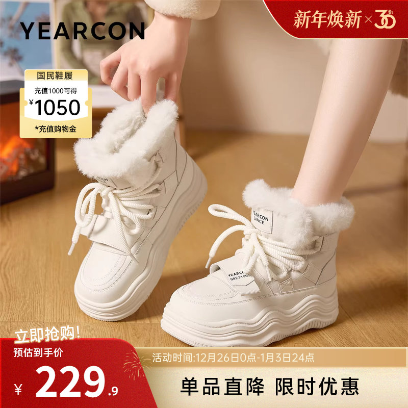 意尔康女鞋2025冬季厚底东北雪地靴户外休闲加厚加绒保暖棉鞋高帮