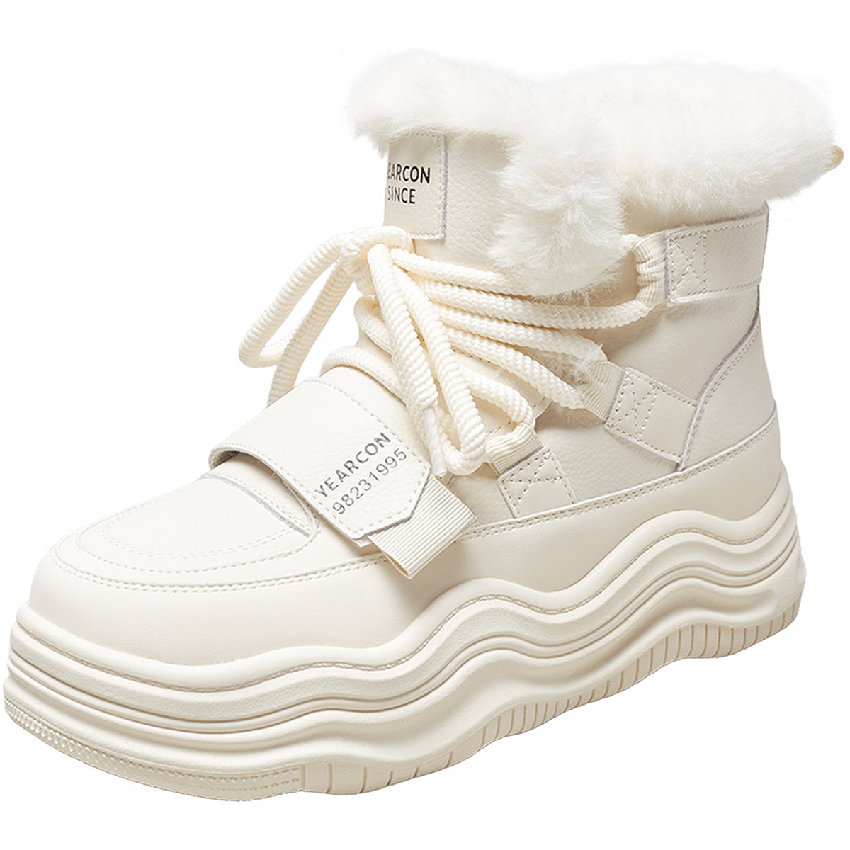 miu家厚底雪地靴女冬季真皮短靴羊毛侧拉链增高厚底加绒毛毛棉鞋