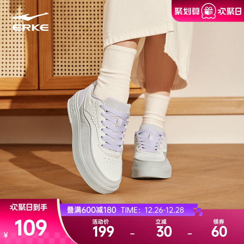 鸿星尔克女板鞋小白鞋2024秋季厚底运动鞋