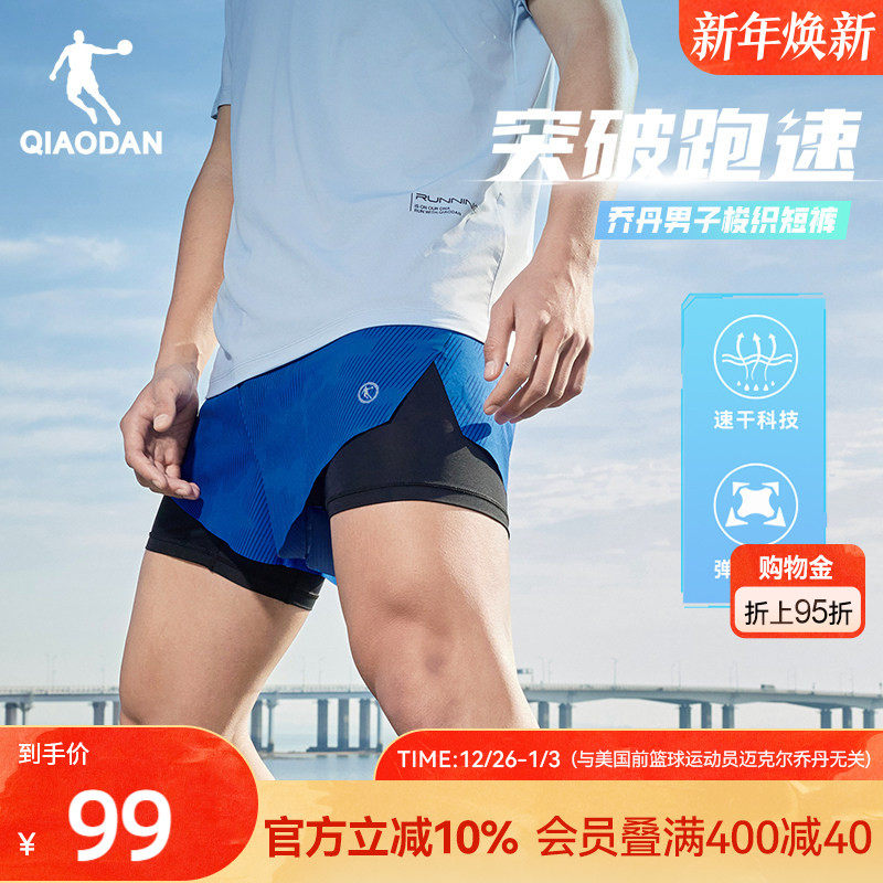 乔丹运动短裤男2025夏季新款男士跑步健身速干假两件梭织透气裤子