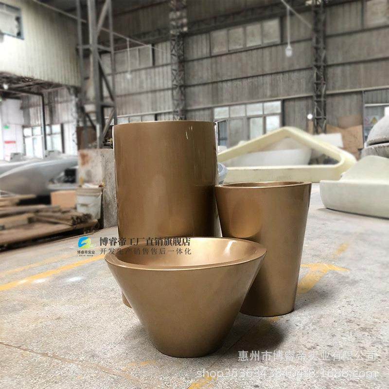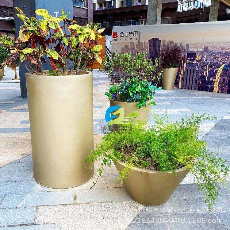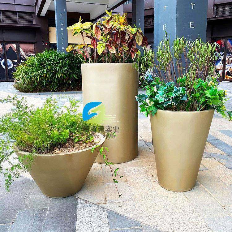 户外景观市政玻璃钢花箱售楼部金色花钵机场公共美陈花器商场花盆