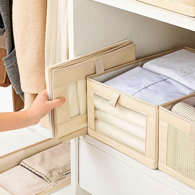 天山棉麻收纳筐衣柜收纳整理分层神器PP板可水洗衣服储物盒收纳箱