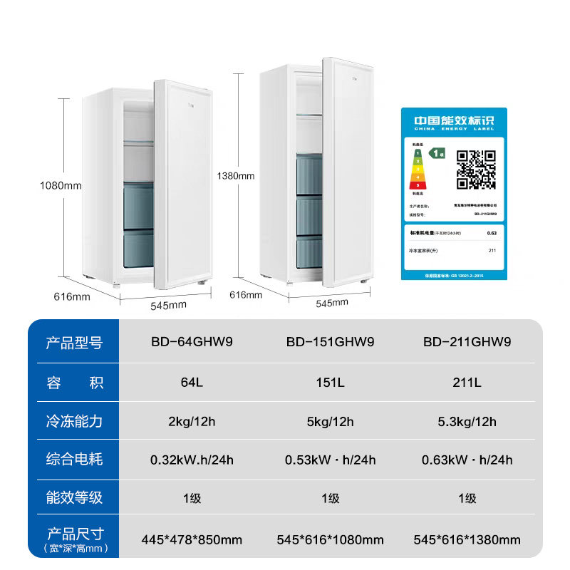 海尔151L/211L家用小型抽屉式冷柜一级节能母婴辅食冰柜冰箱