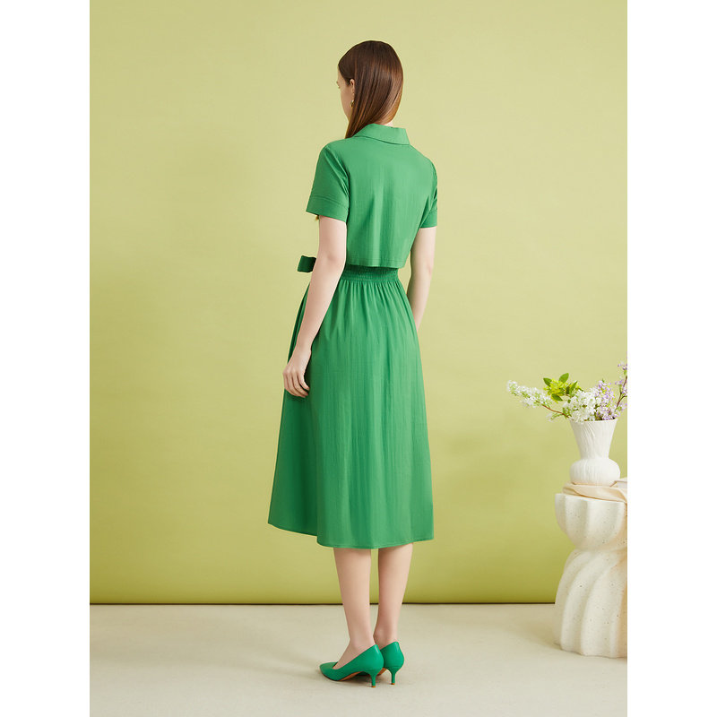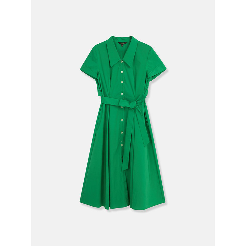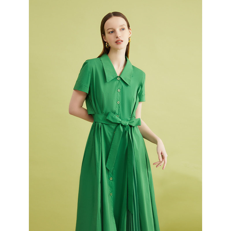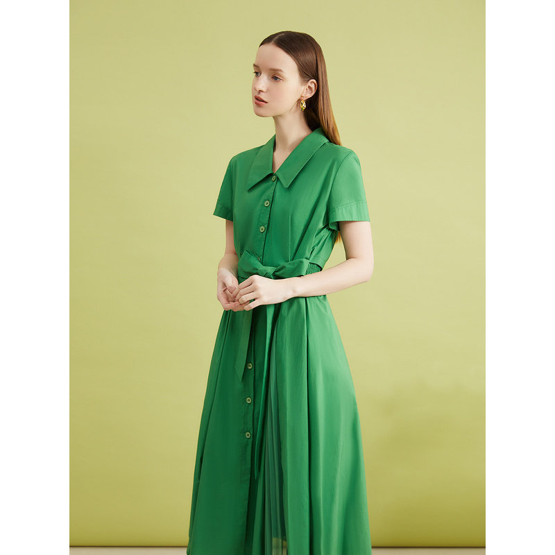 YINER音儿夏季女装高支棉法式优雅翻领收褶拼接雪纺连衣裙