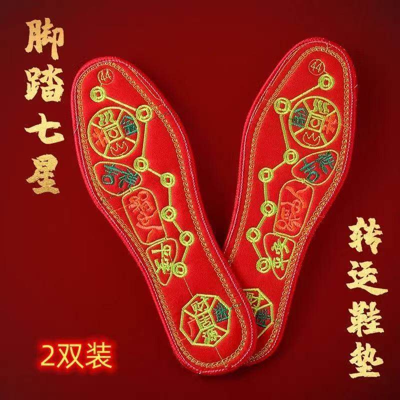 脚踏七星绣花鞋垫男女士本命年红色喜庆结婚刺绣防臭吸汗透气新年