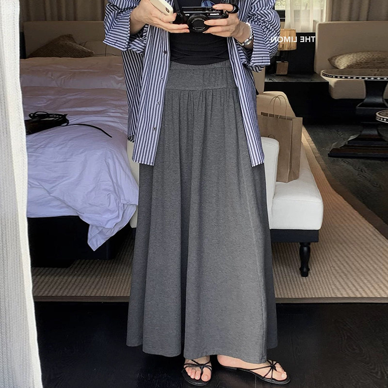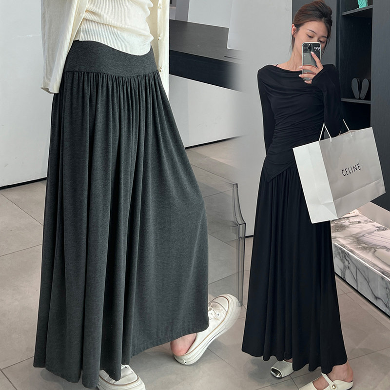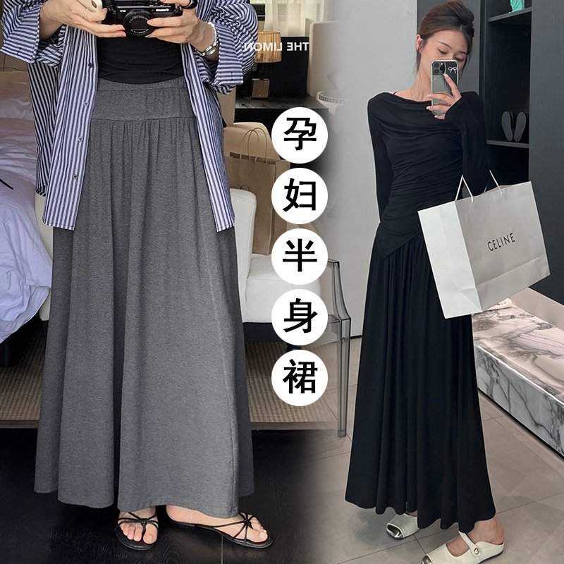 婧麒孕妇新款针织高腰显瘦半身裙女黑色A字法式大摆长裙褶皱裙