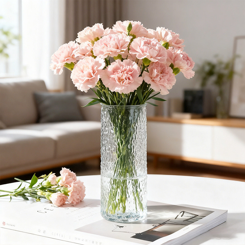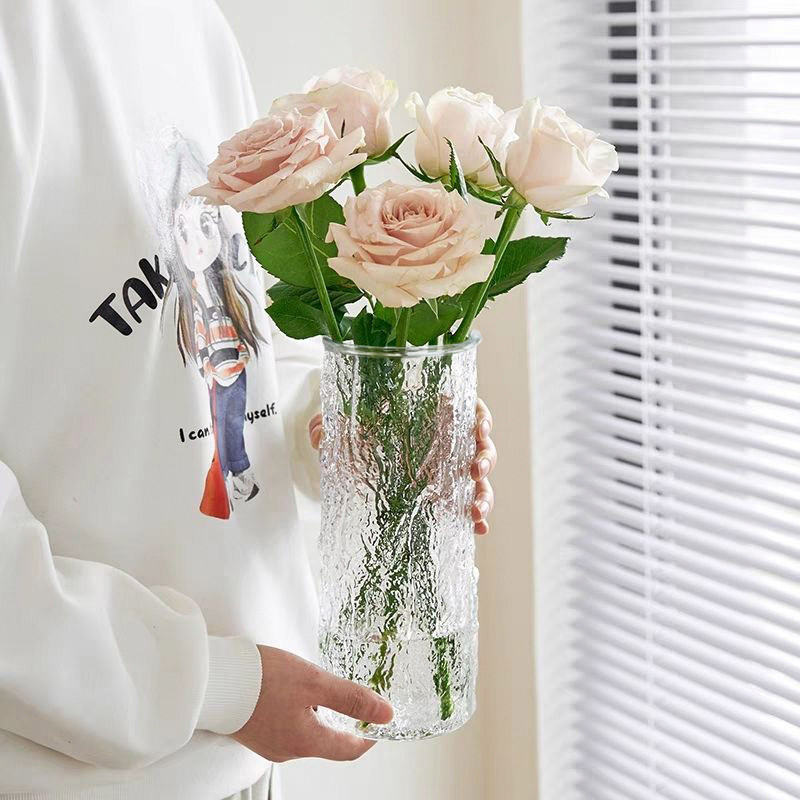 加厚ins风网冻花瓶玻璃透明客厅餐桌摆件高端鲜花电视柜卧室玄关