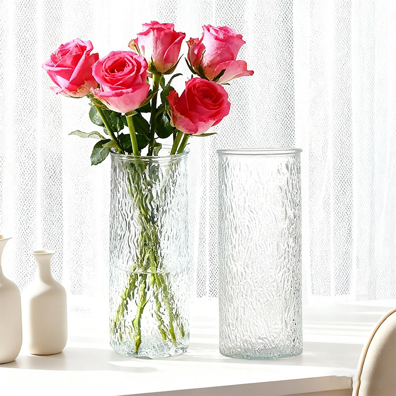 轻奢玻璃花瓶直筒透明水养鲜花百合富贵竹ins高颜值客厅装饰摆件