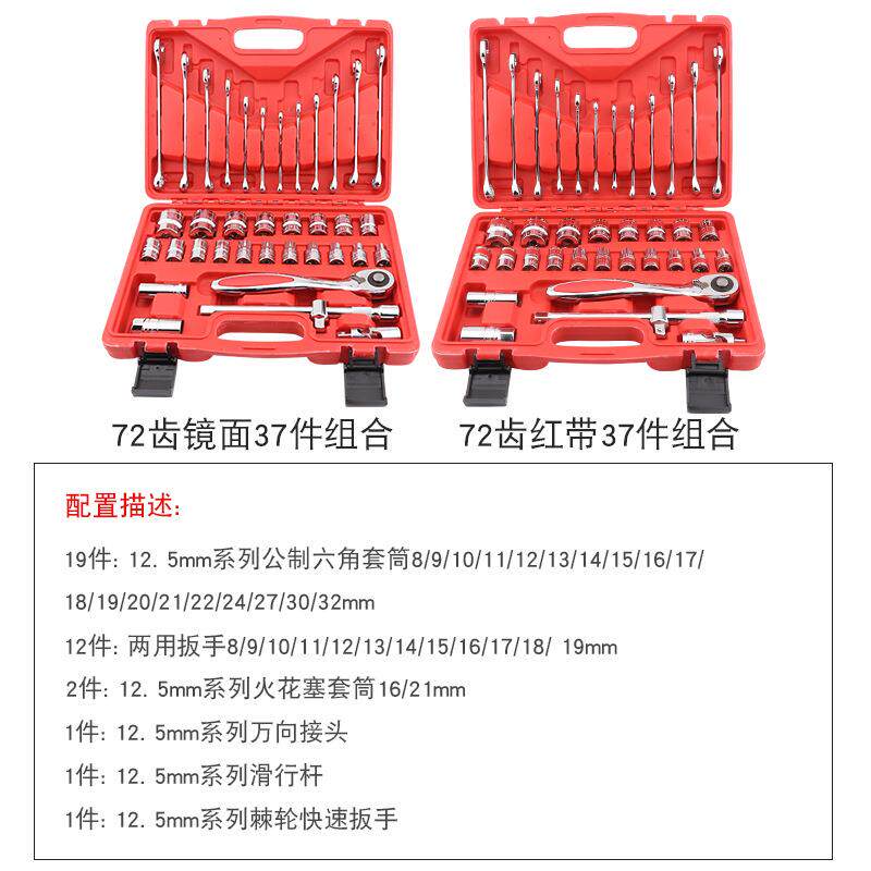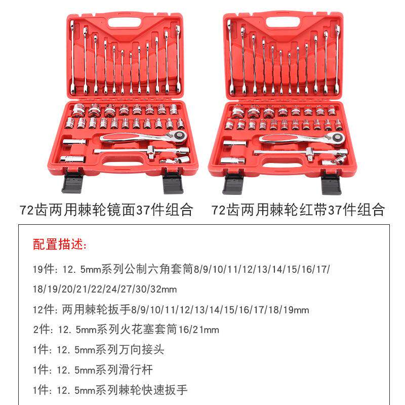 厂家帝创37件套筒镜面红带气动两用扳手组合套装手动五金工具